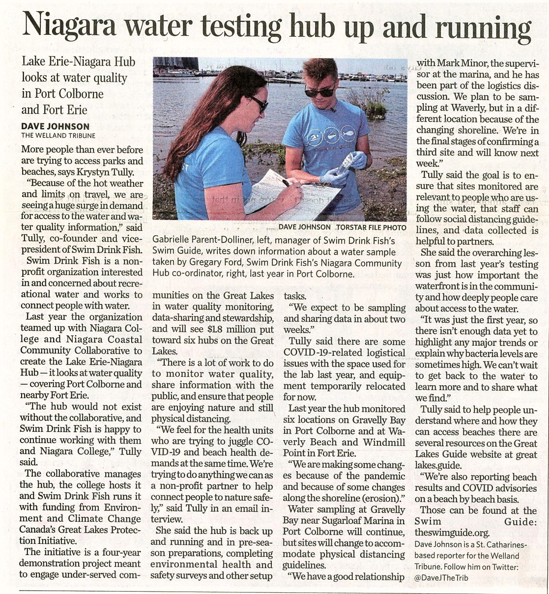 Niagara water testing hub up and running : Lake Erie-Niagara Hub looks at water quality in Port Colborne and Fort Erie