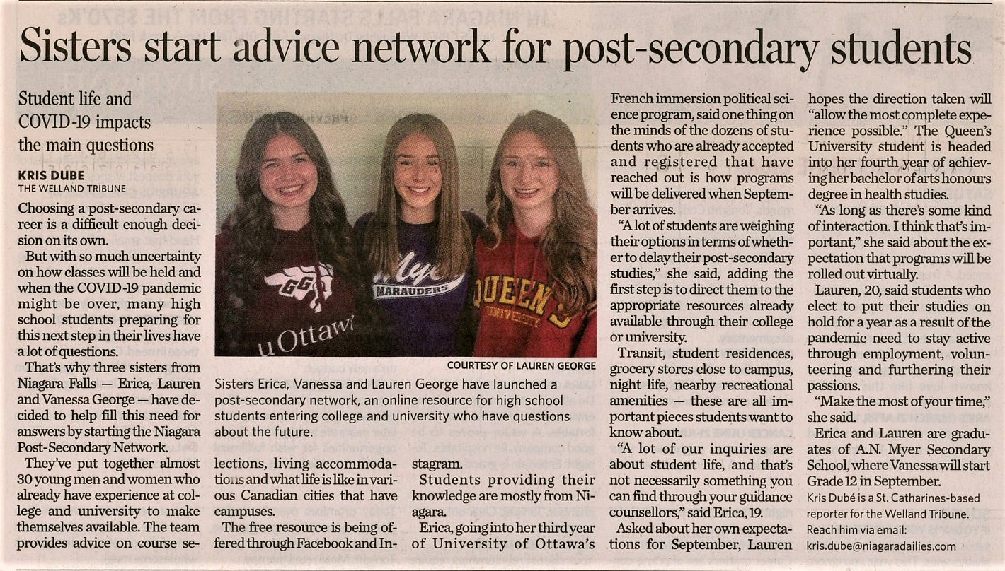 - George, Erica / George, Vanessa / George, Lauren / COVID-19 pandemic / Niagara Post-Secondary Network / students / college / university