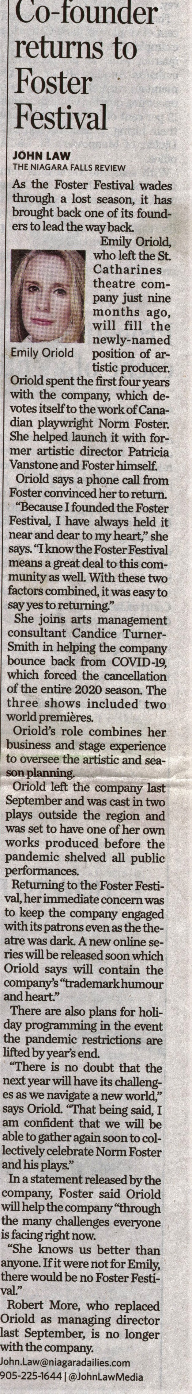 - Oriold, Emily / Foster Festival / Foster, Norm / Vanstone, Patricia / artistic producer / COVID-19 pandemic