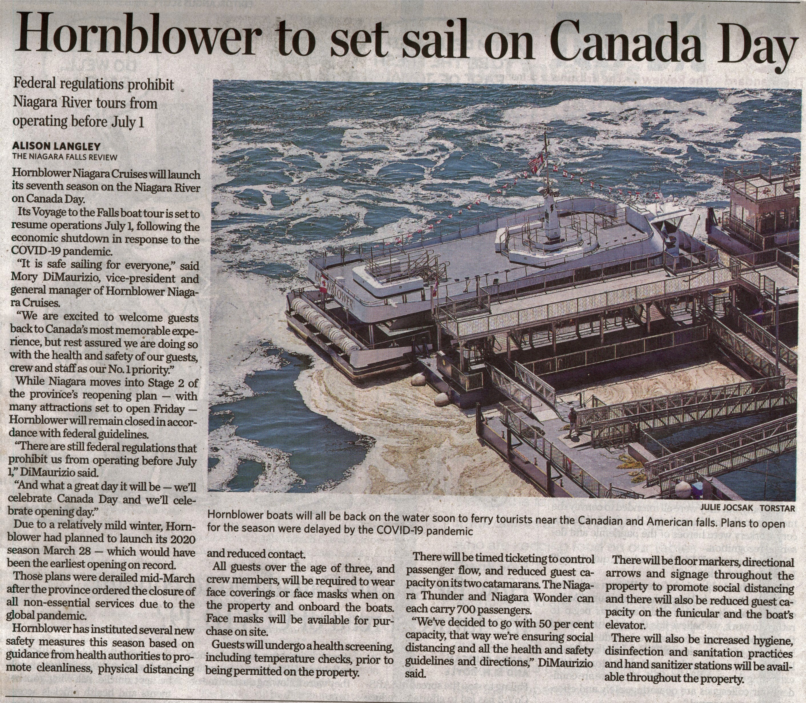 - Hornblower to set sail on Canada Day : Federal regulations prohibit Niagara River tours from operating before July 1