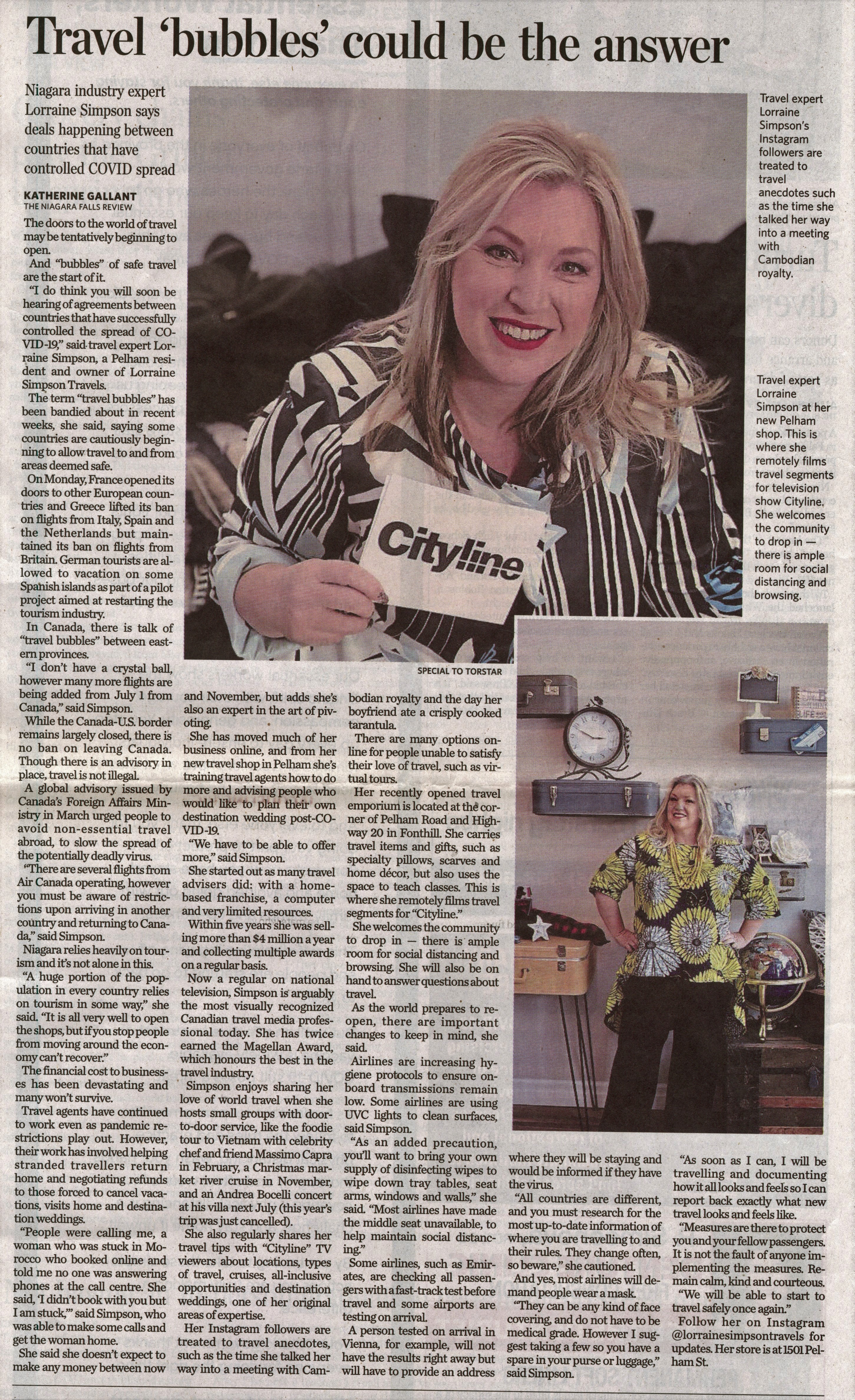 - Travel 'bubbles' could be the answer : Niagara industry expert Lorraine Simpson says deals happening between countries that have controlled COVID spread