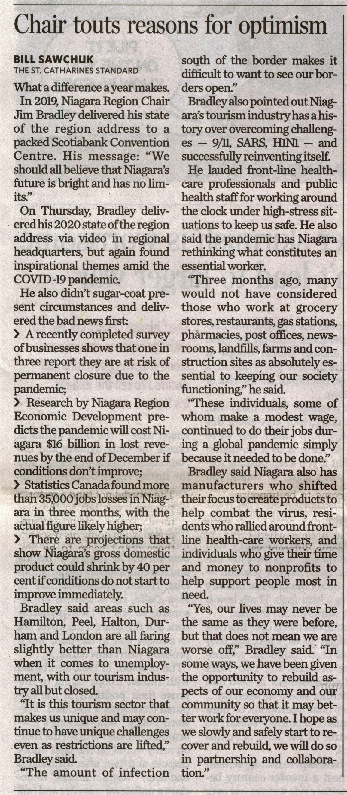 - Niagara Region / Bradley, Jim / state of the region address / COVID-19 pandemic