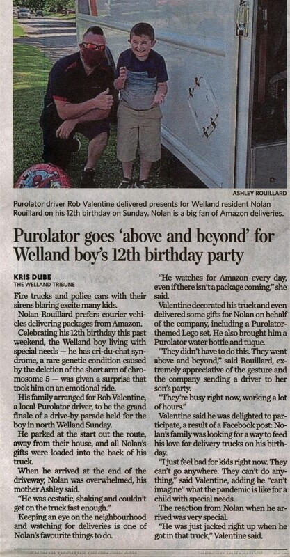- Purolator goes 'above and beyond' for Welland boy's 12th birthday party