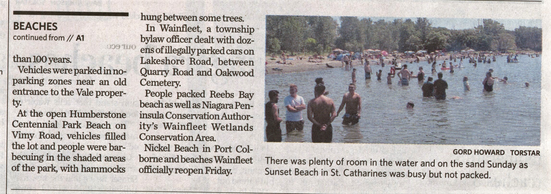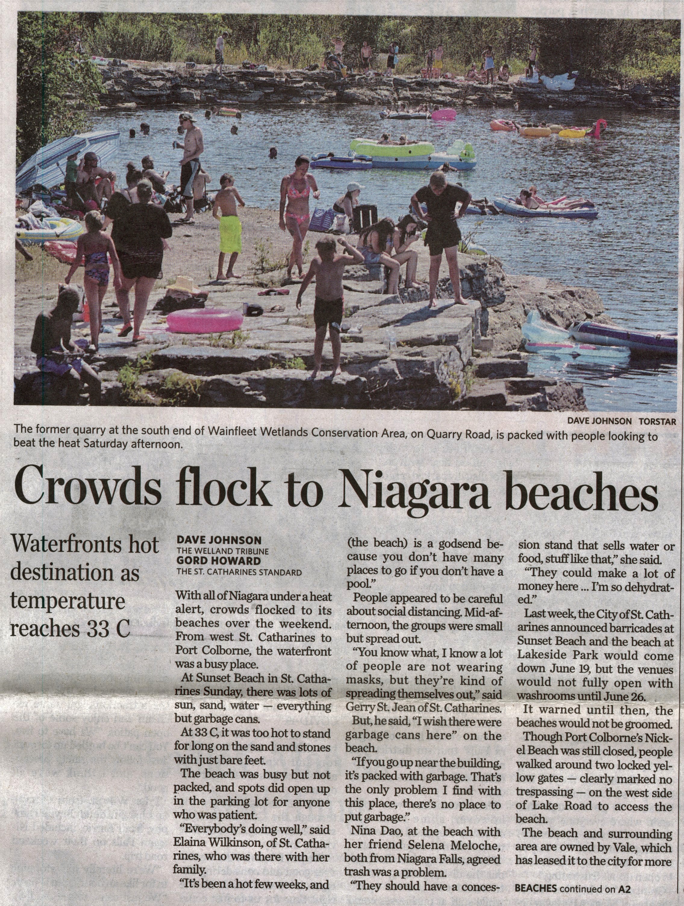 - Crowds flock to Niagara beaches : Waterfronts hot destination as temperature reaches 33 C