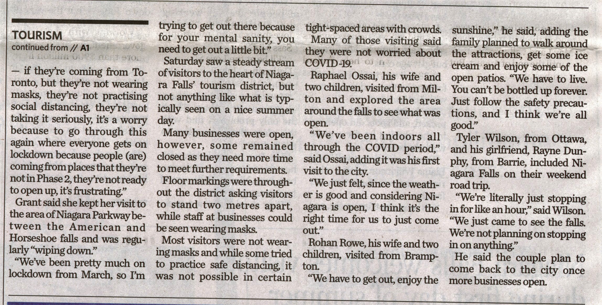 - Niagara Falls welcomes visitors during first day of summer : Destination sees steady stream of visitors, but not as busy as is typical