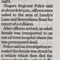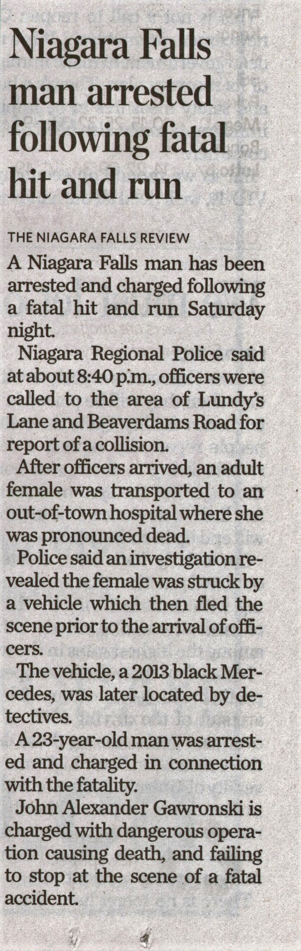 - Gawronski, John Alexander / Niagara Regional Police / fatal hit and run
