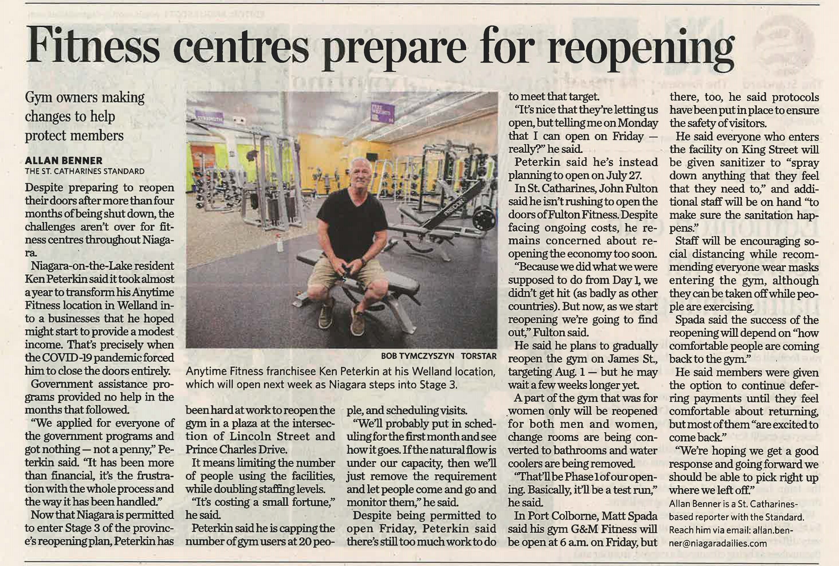 - Fitness centres prepare for reopening : gym owners making changes to help protect members