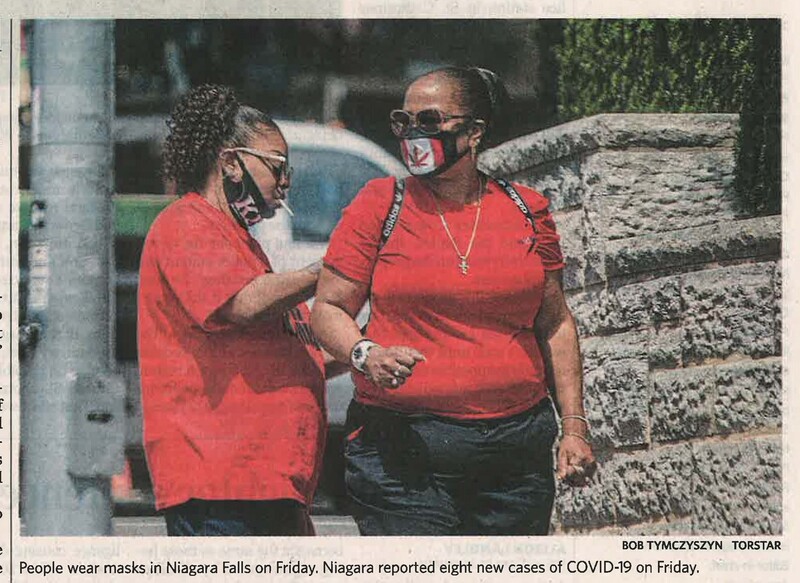 - People wear masks in Niagara Falls on Friday : Niagara reported eight new cases of COVID-19 on Friday