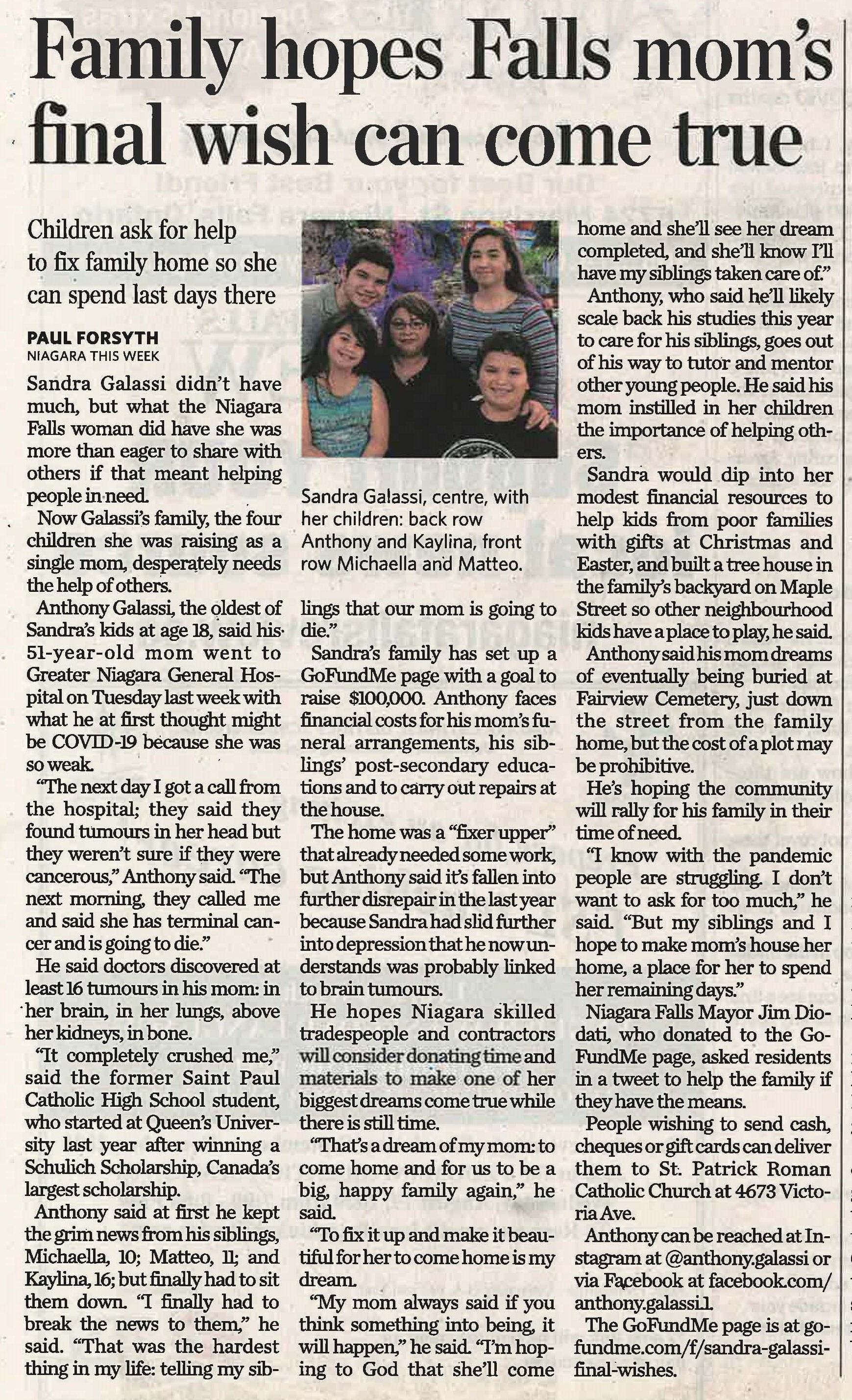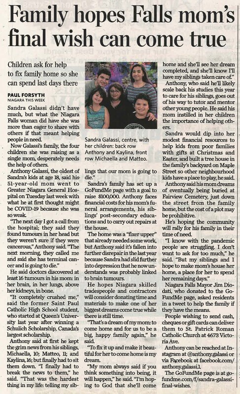 - Family hopes Falls mom's final wish can come true : Children ask for help to fix family home so she can spend last days there