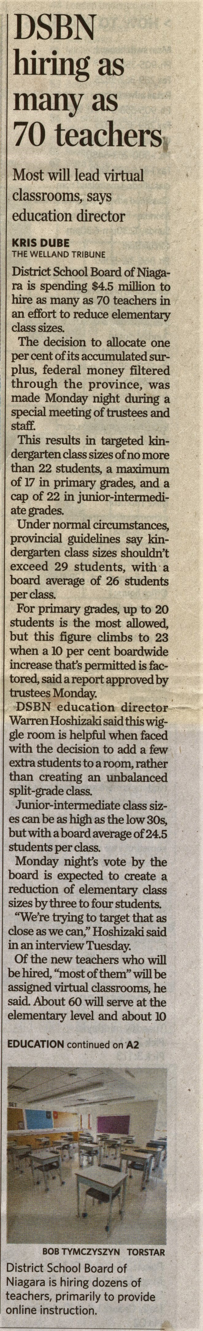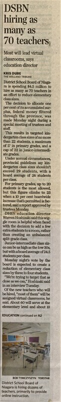 - DSBN hiring as many as 70 teachers : Most will lead virtual classrooms, says education director