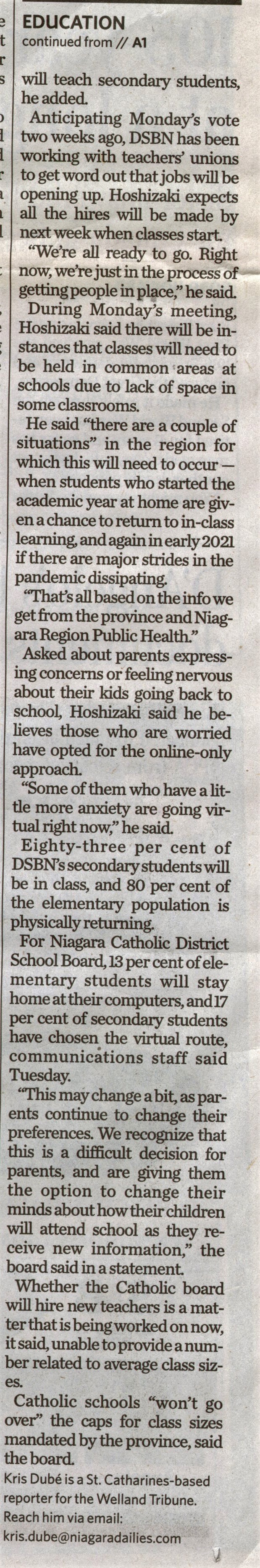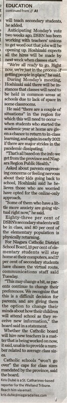 - District School Board of Niagara / Hoshizaki, Warren / on-line learning / COVID-19 pandemic