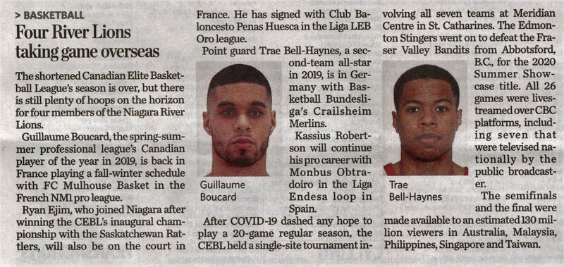 - Niagara River Lions / Boucard, Guillaume / Ejim, Ryan / Bell-Haynes, Trae / Robertson, Kassius / COVID-19 pandemic