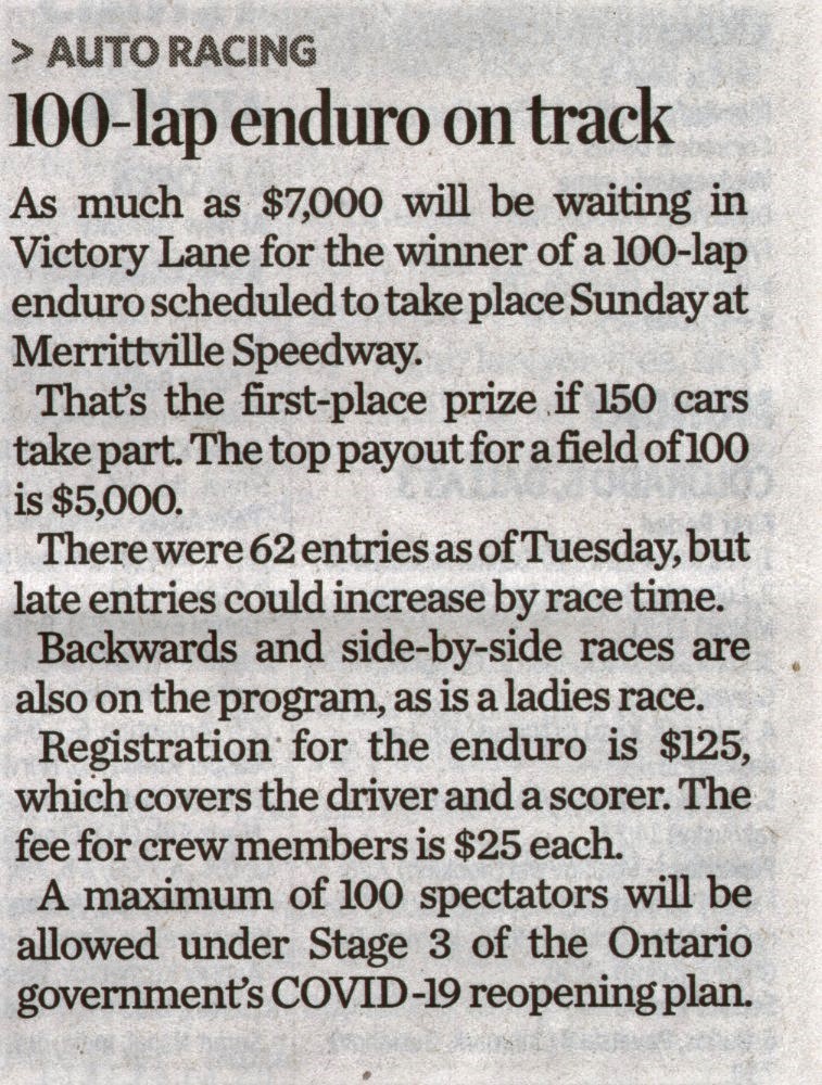 Merrittville Speedway / Stage 3 / 100 spectators / COVID-19 pandemic