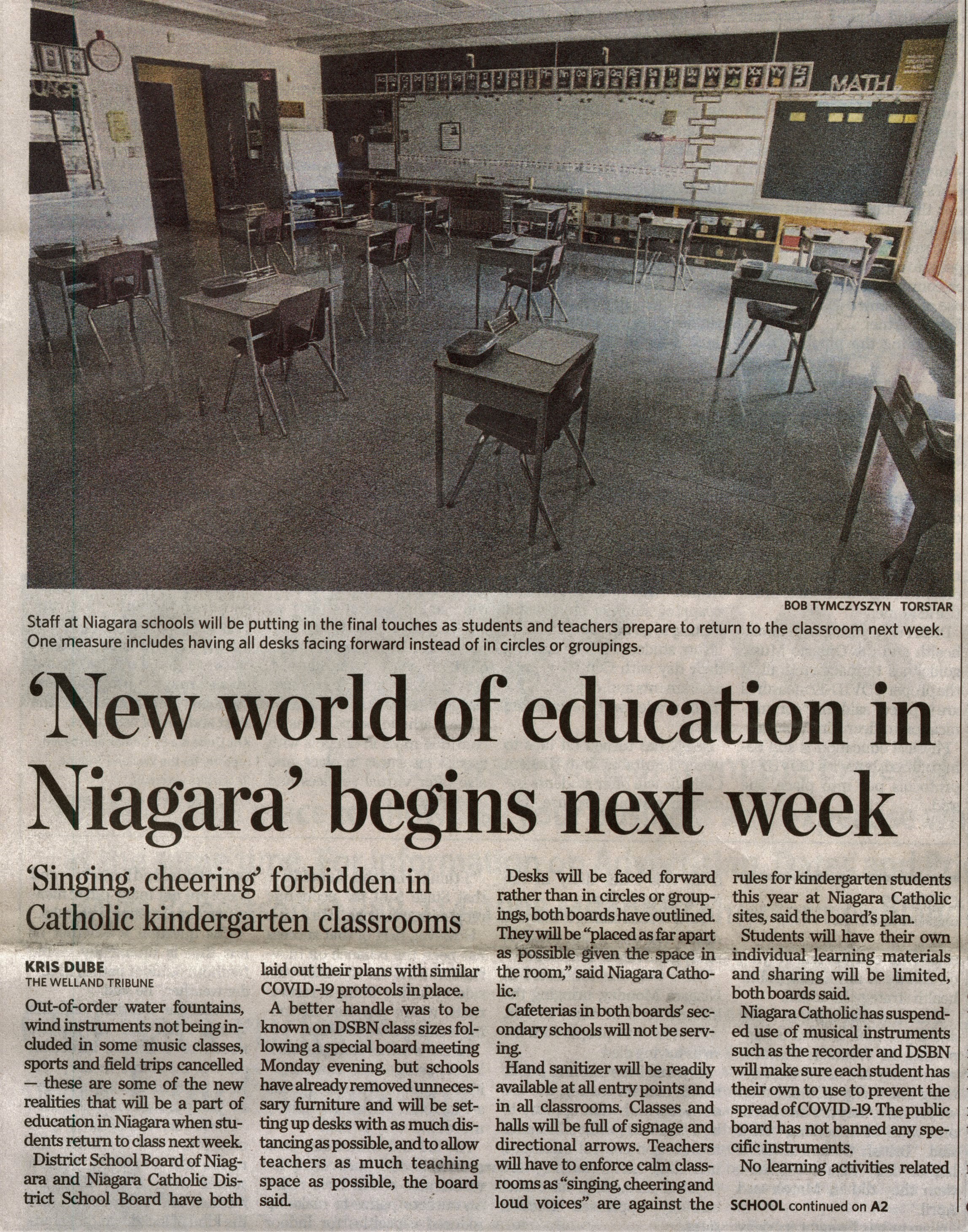 - 'New world of education in Niagara' begins next week : 'Singing, cheering' forbidden in Catholic Kindergarten classrooms