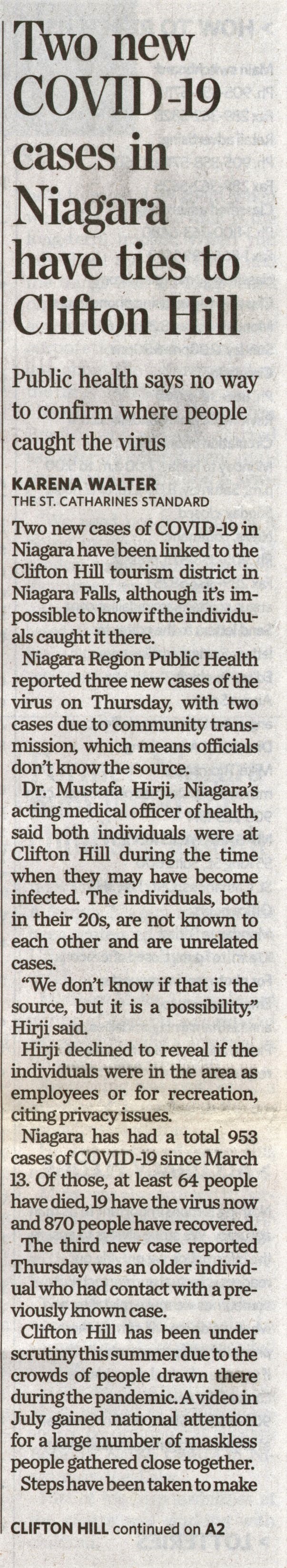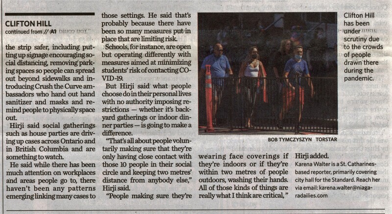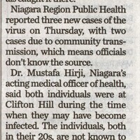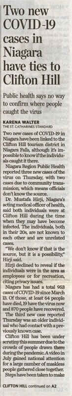 - COVID-19 cases / Clifton Hill / Niagara Region Public Health / Hirji, Mustafa Dr. / tourism
