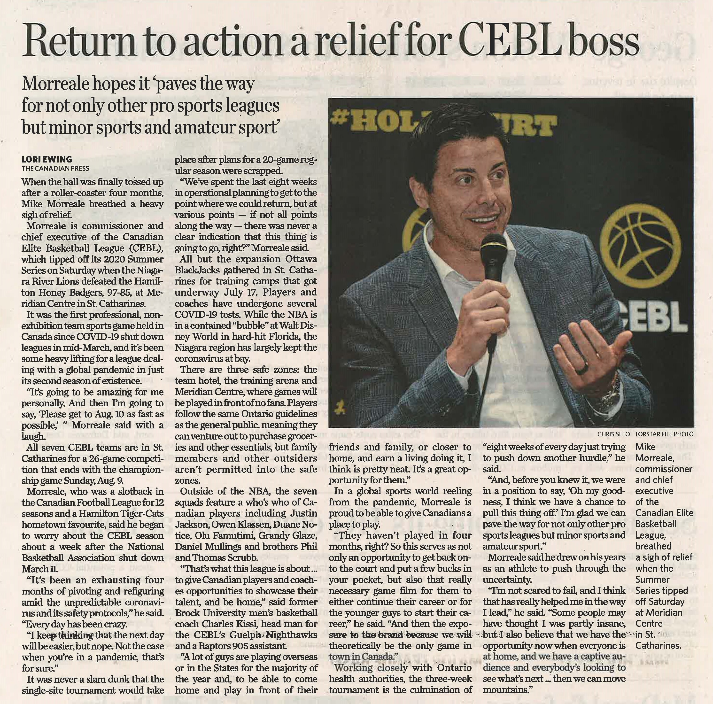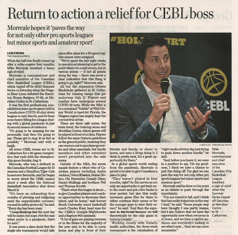 Return to action a relief for CEBL boss : Morreale hopes it paves the way for not only other pro sports leagues but minor sports and amateur sport