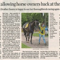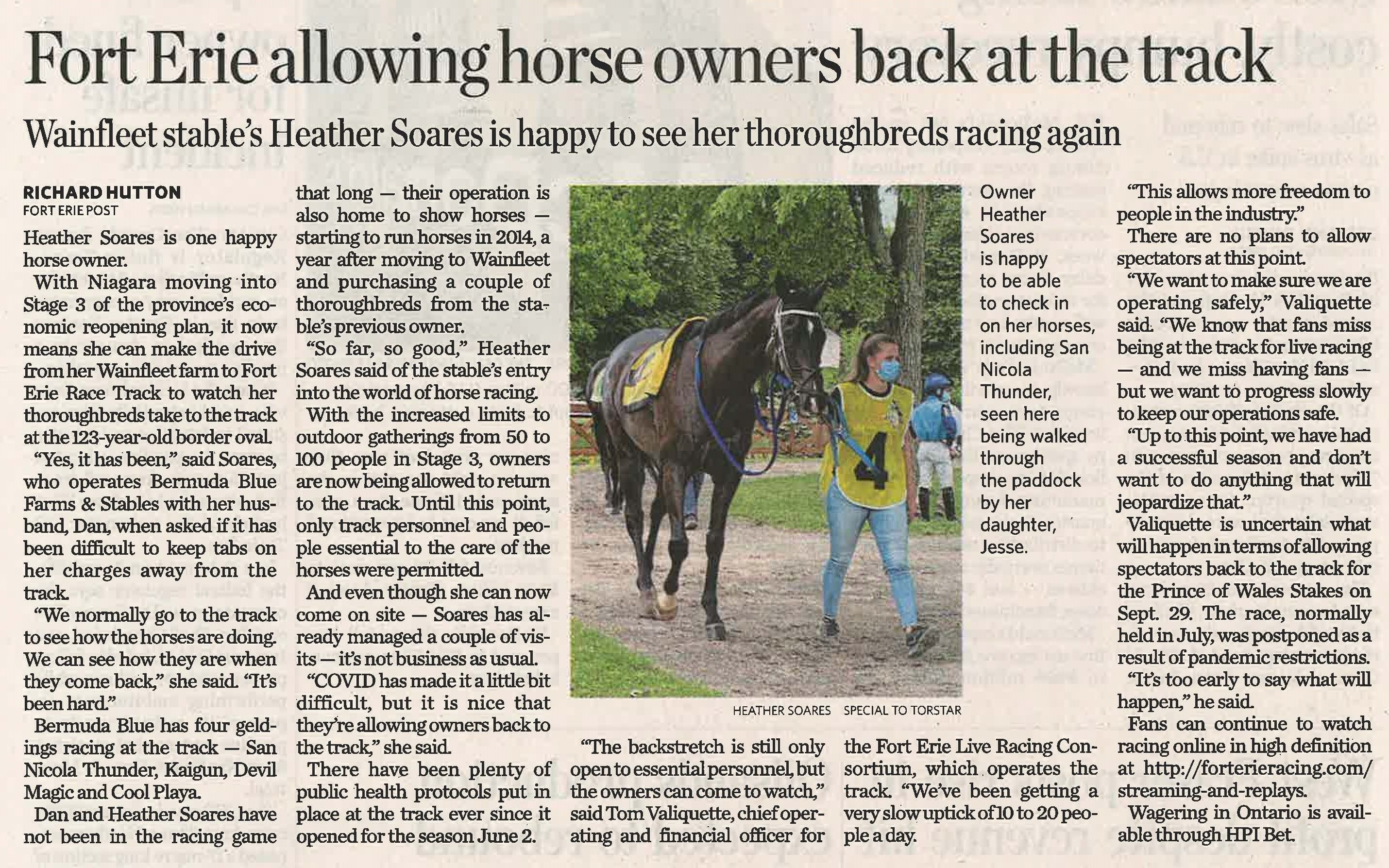 - Fort Erie allowing horse owners back at the track : Wainfleet stable's Heather Soares is happy to see her thoroughbreds racing again