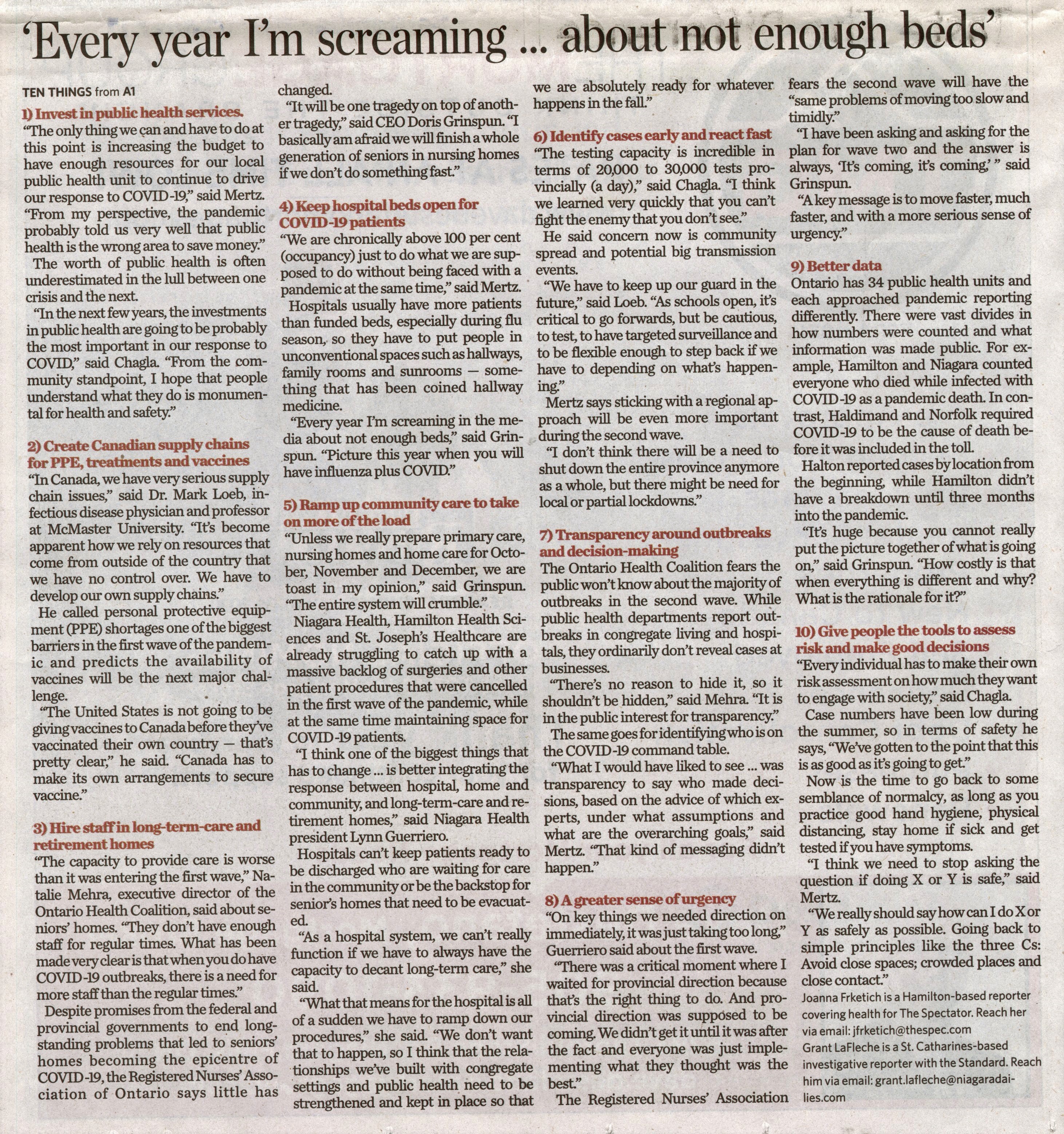 - Pandemic Politics: Day four of a four-part series : Ten things Ontario needs to do to fight a second wave of COVID-19 : We have the tools to control the impact of the virus -- we need to use them