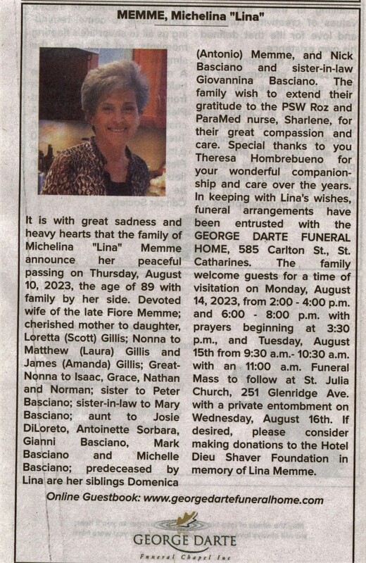 Memme, Michelina August 12 2023 pg B9.jpg