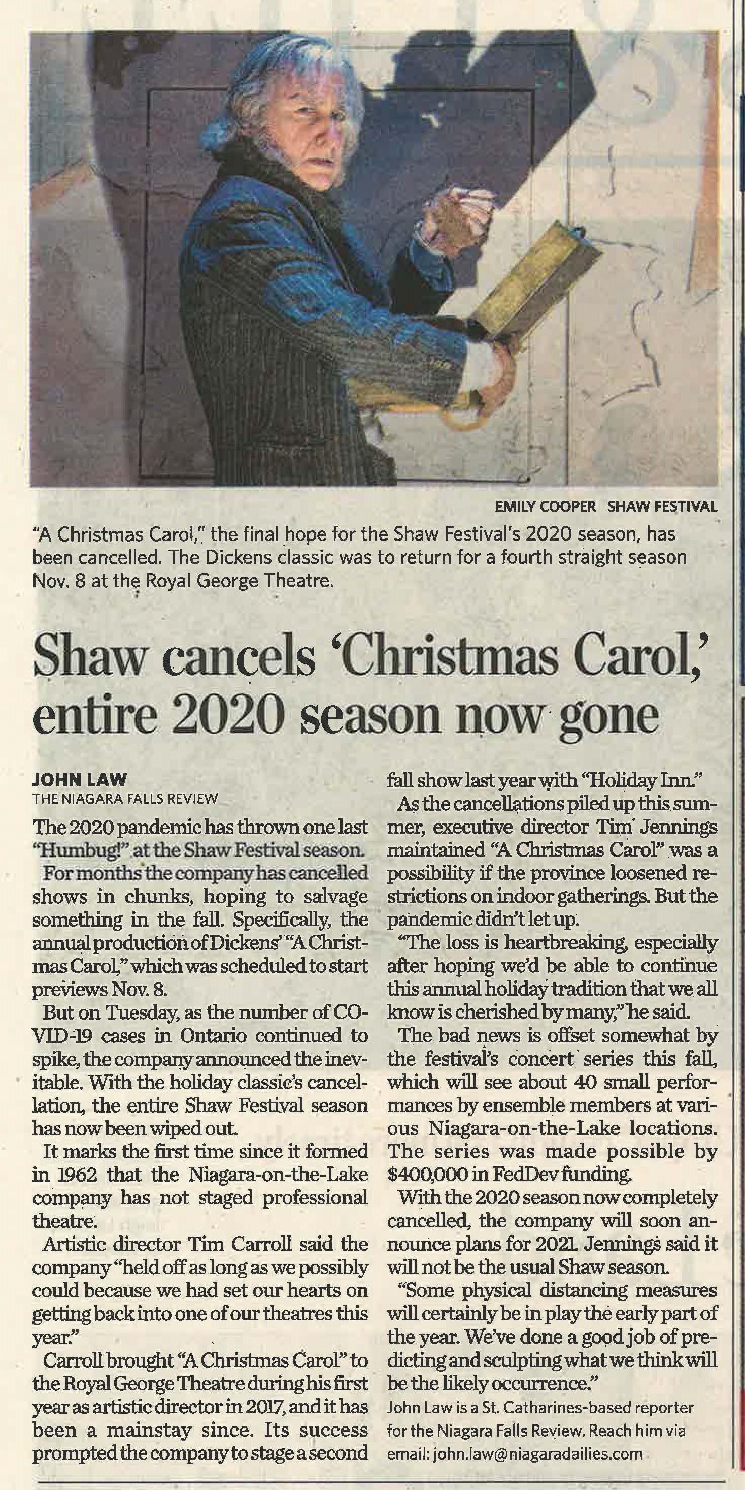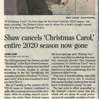 - Shaw cancels Christmas Carol, entire 2020 season now gone