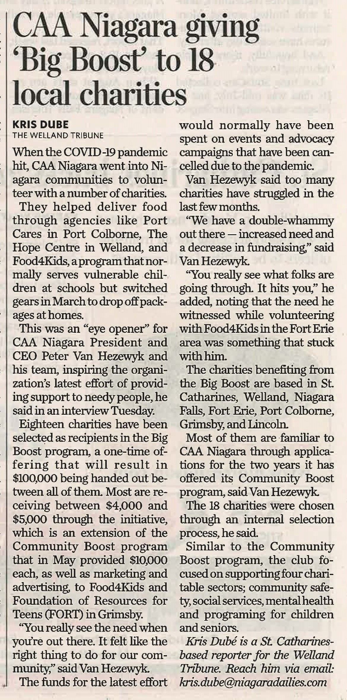 - CAA Niagara giving 'Big Boost' to 18 local charities