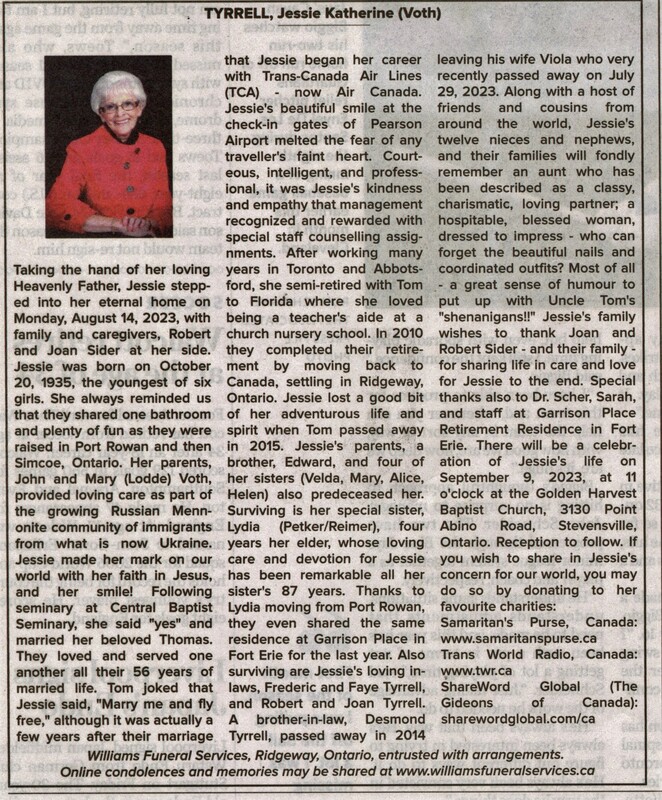 Tyrrell, Jessie Katherine (nee Voth)