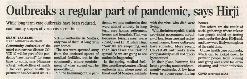 - Outbreaks a regular part of pandemic, says Hirji : While long-term care outbreaks have been reduced, community surges of virus cases continue
