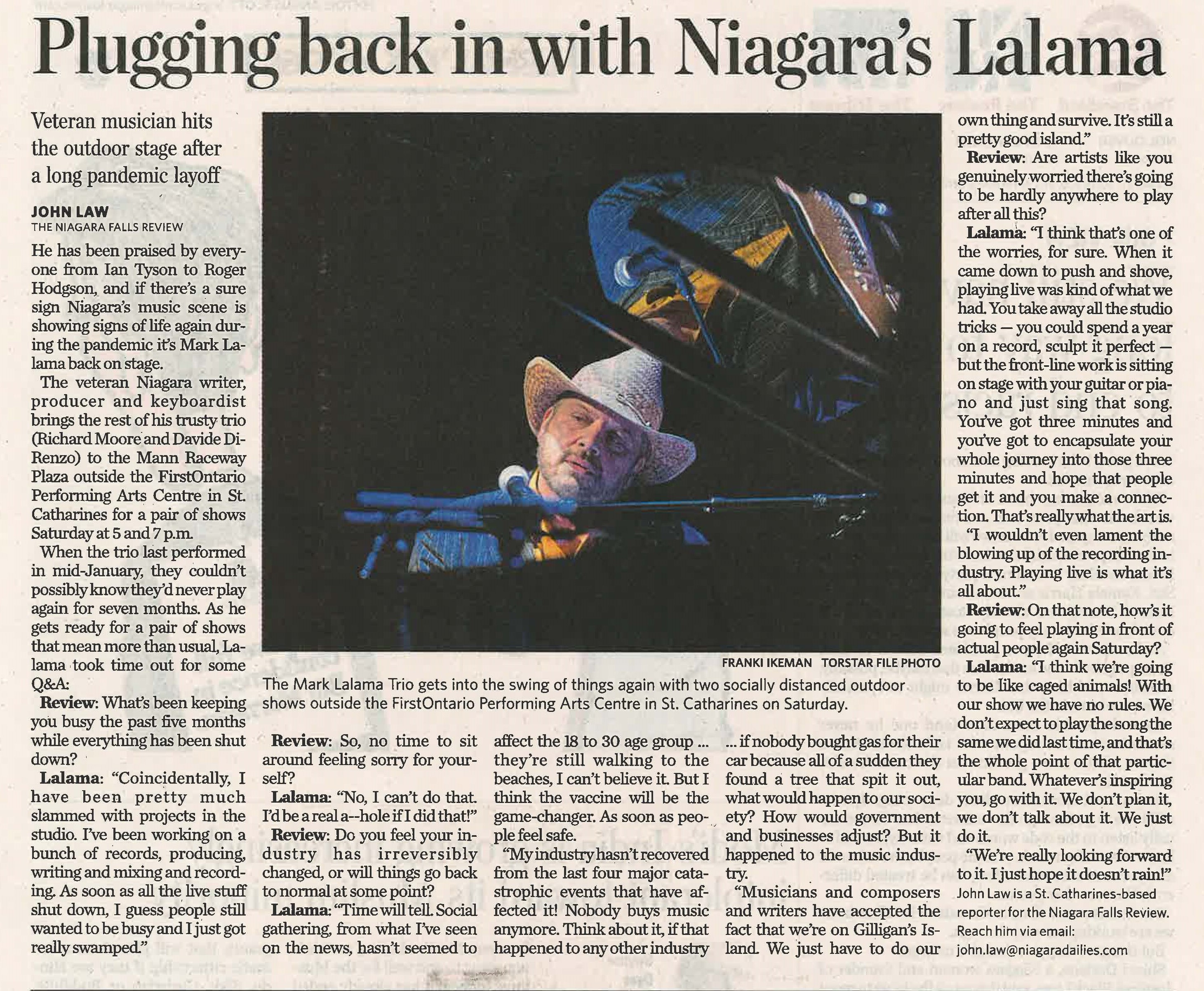 - Plugging back in with Niagara's Lalama : Veteran musician hits the outdoor stage after a long pandemic layoff