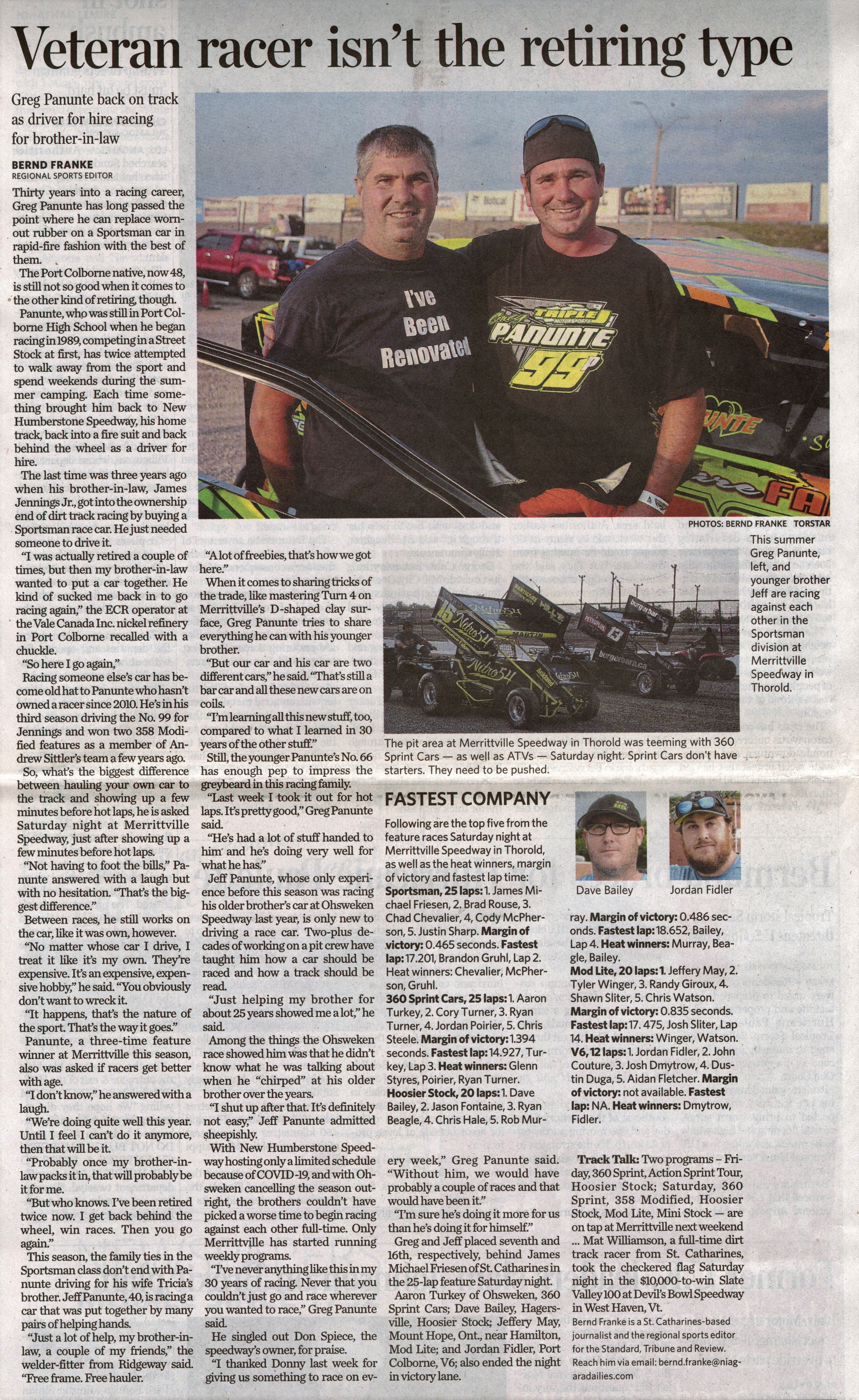 - Veteran racer isn't the retiring type : Greg Panute back on track as driver for hire racing for brother-in-law