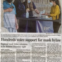 - Hundreds voice support for mask bylaw : Regional mask bylaw extension to be debated Thursday night