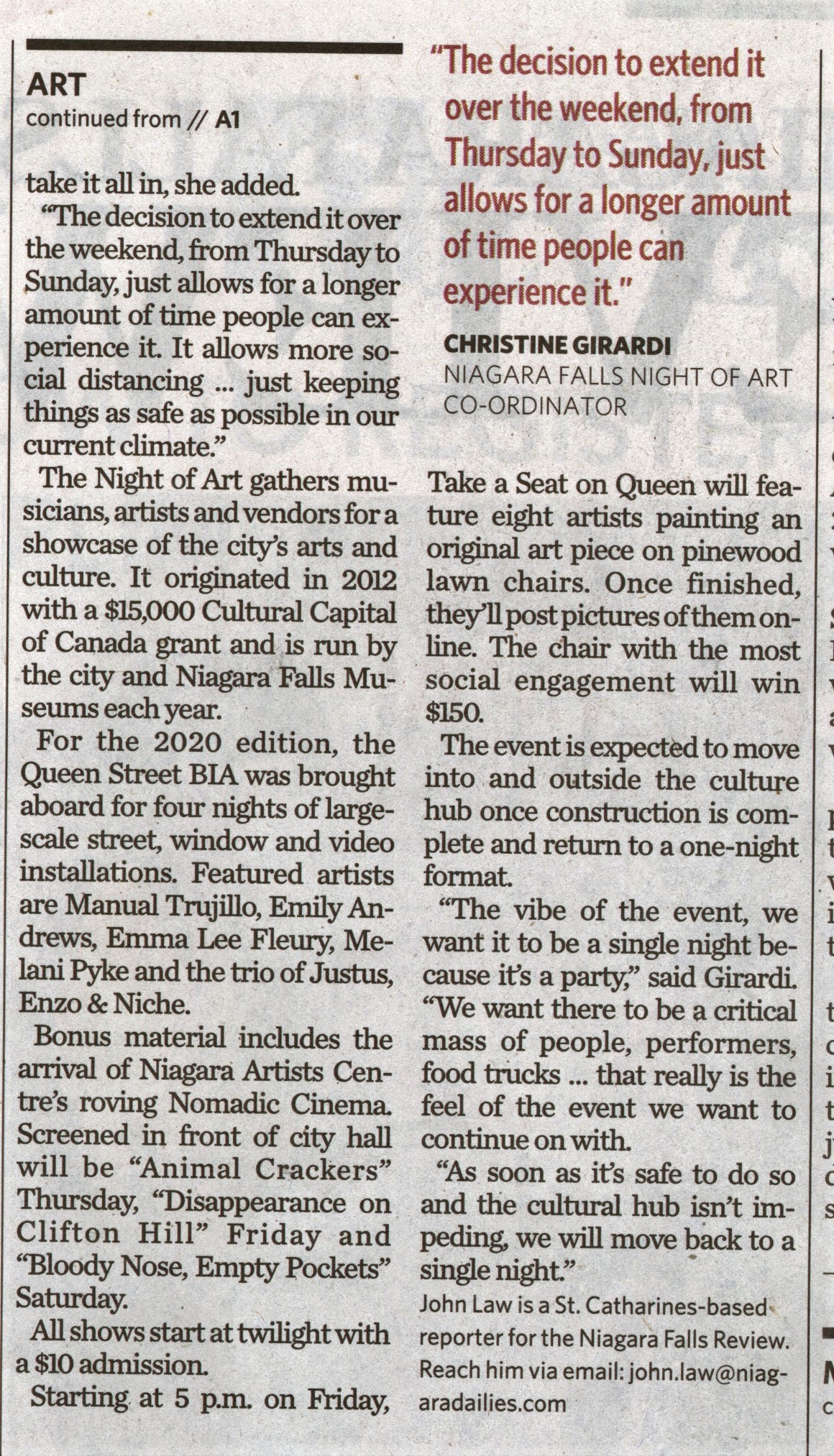 - Niagara Falls Night of Art goes to four nights on Queen Street : Event originated in 2012 and is run by the city and Niagara Falls Museums each year