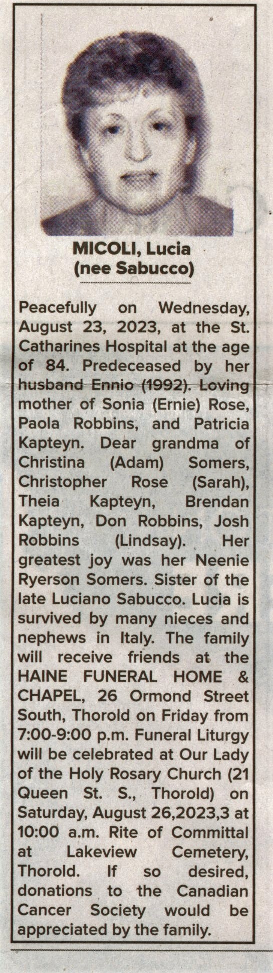 Micoli, Lucia (nee Sabucco)