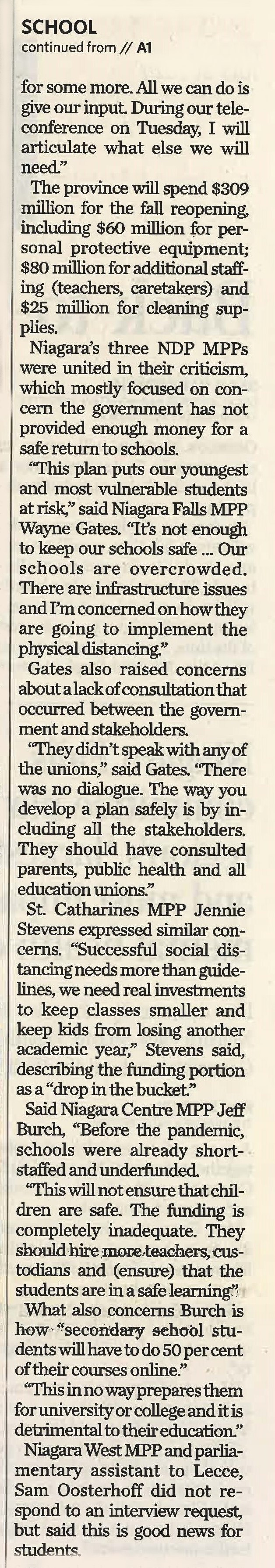 Back-to-school plan underfunded : MPPs