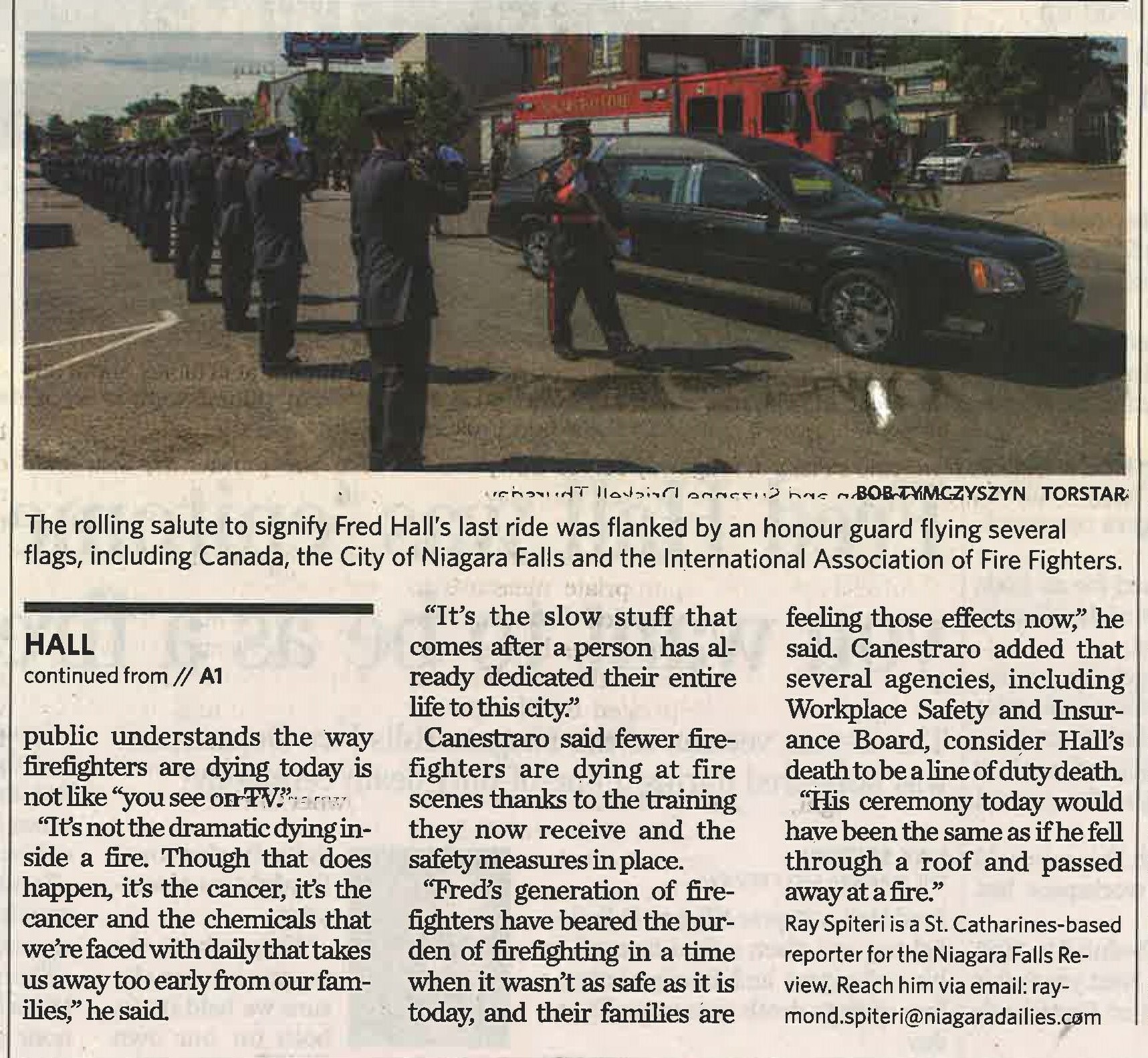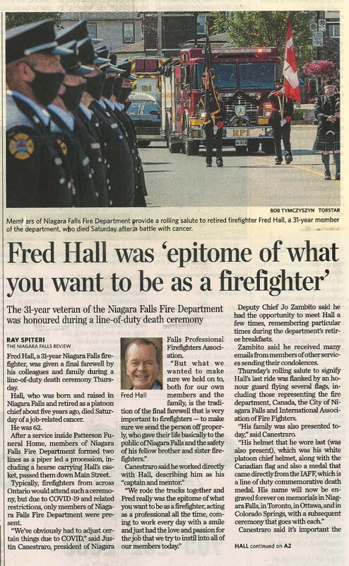 Fred Hall was epitome of what you want to be as a firefighter : the 31-year veteran of the Niagara Falls Fire Department was honoured during a line-of-duty death ceremony