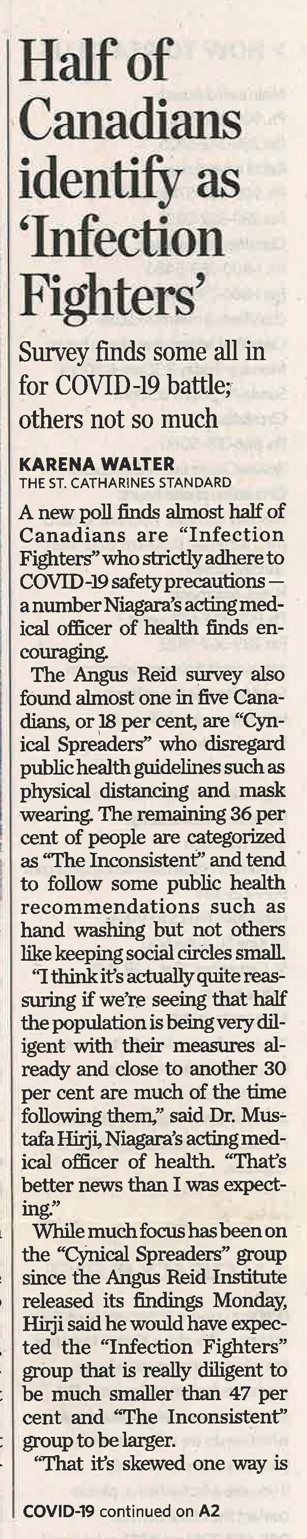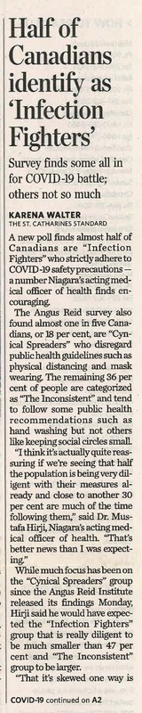 - Half of Canadians identify as 'Infection Fighters' : Survey finds some all in for COVID-19 battle; others not so much