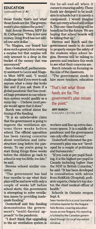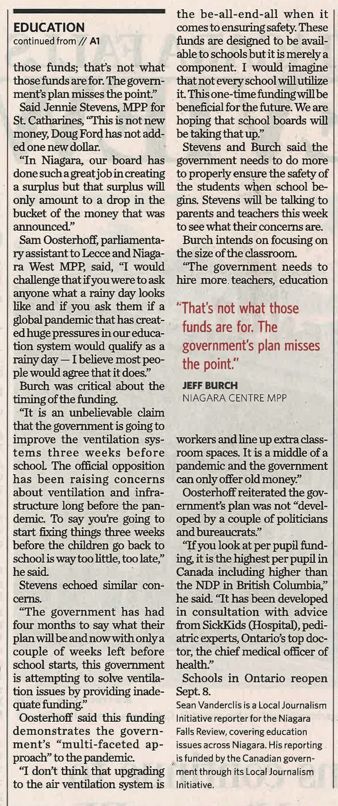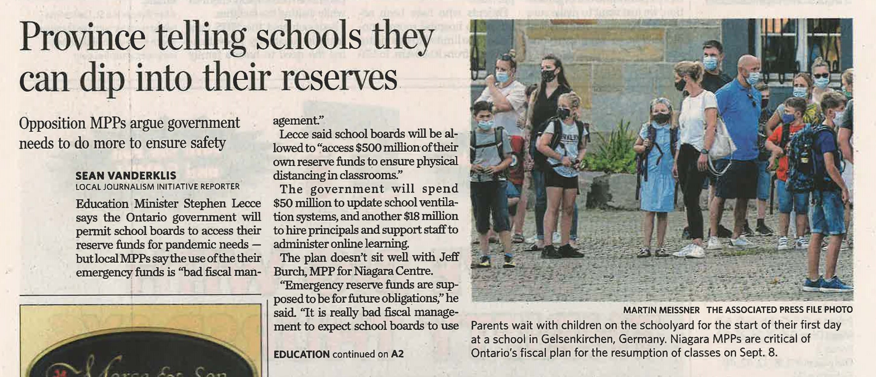 - Province telling schools they can dip into their reserves : Opposition MPPs argue government needs to do more to ensure safety