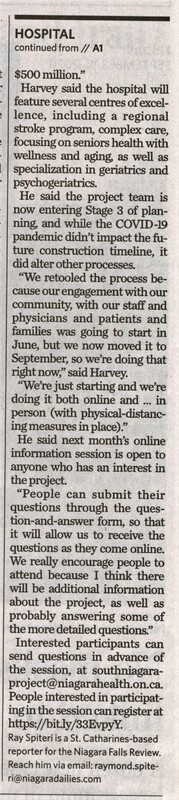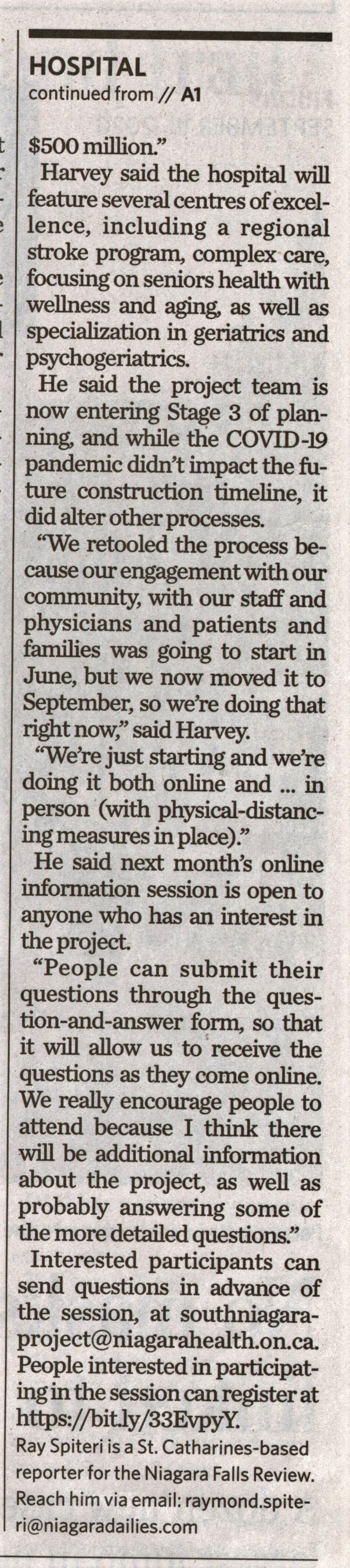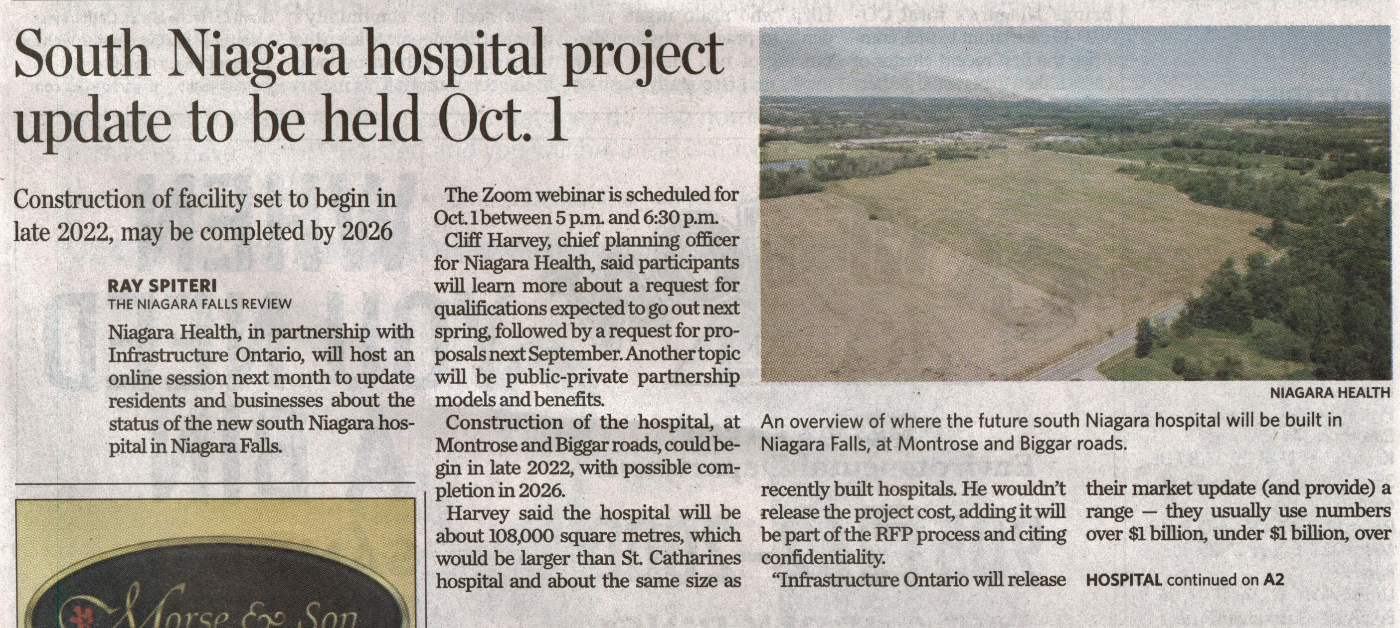 - South Niagara hospital project update to be held Oct. 1 : Contruction of facility set to begin in late 2022, may be completed by 2026