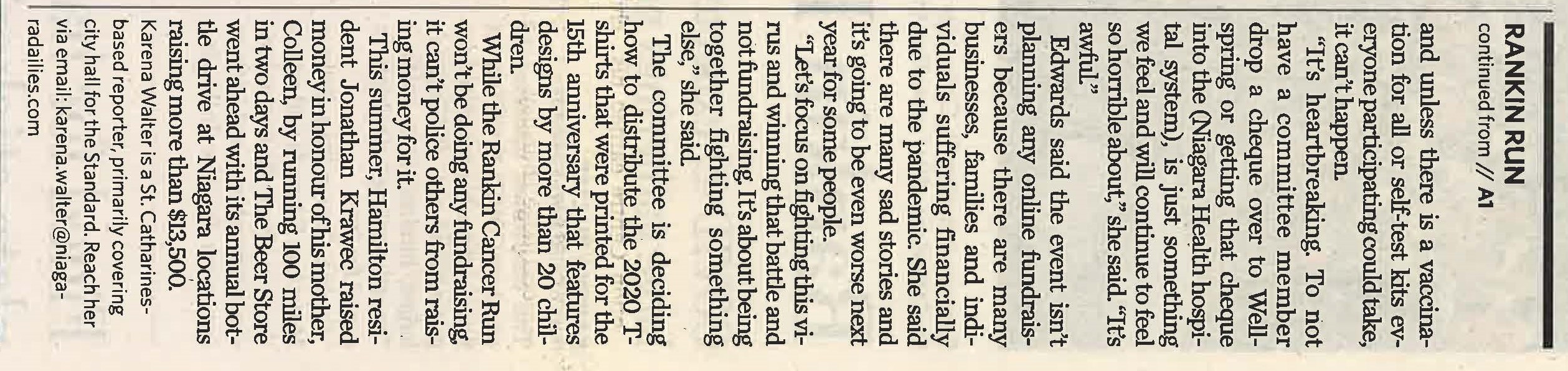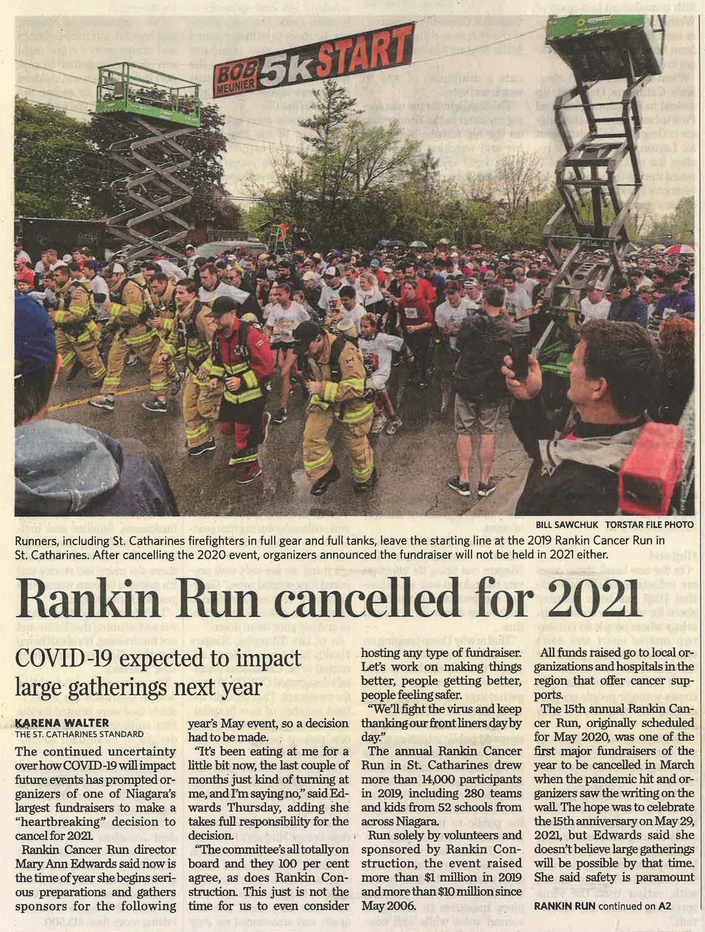 - Rankin Run cancelled for 2021 : COVID-19 expected to impact large gatherings next year