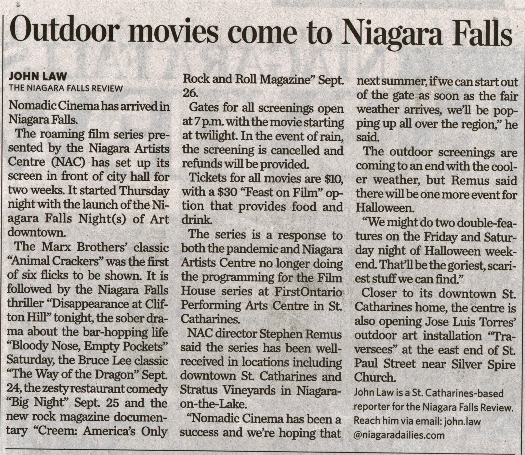 Nomadic Cinema / Niagara Artists Center / Niagara Falls Nights of Art / Remus, Stephen /