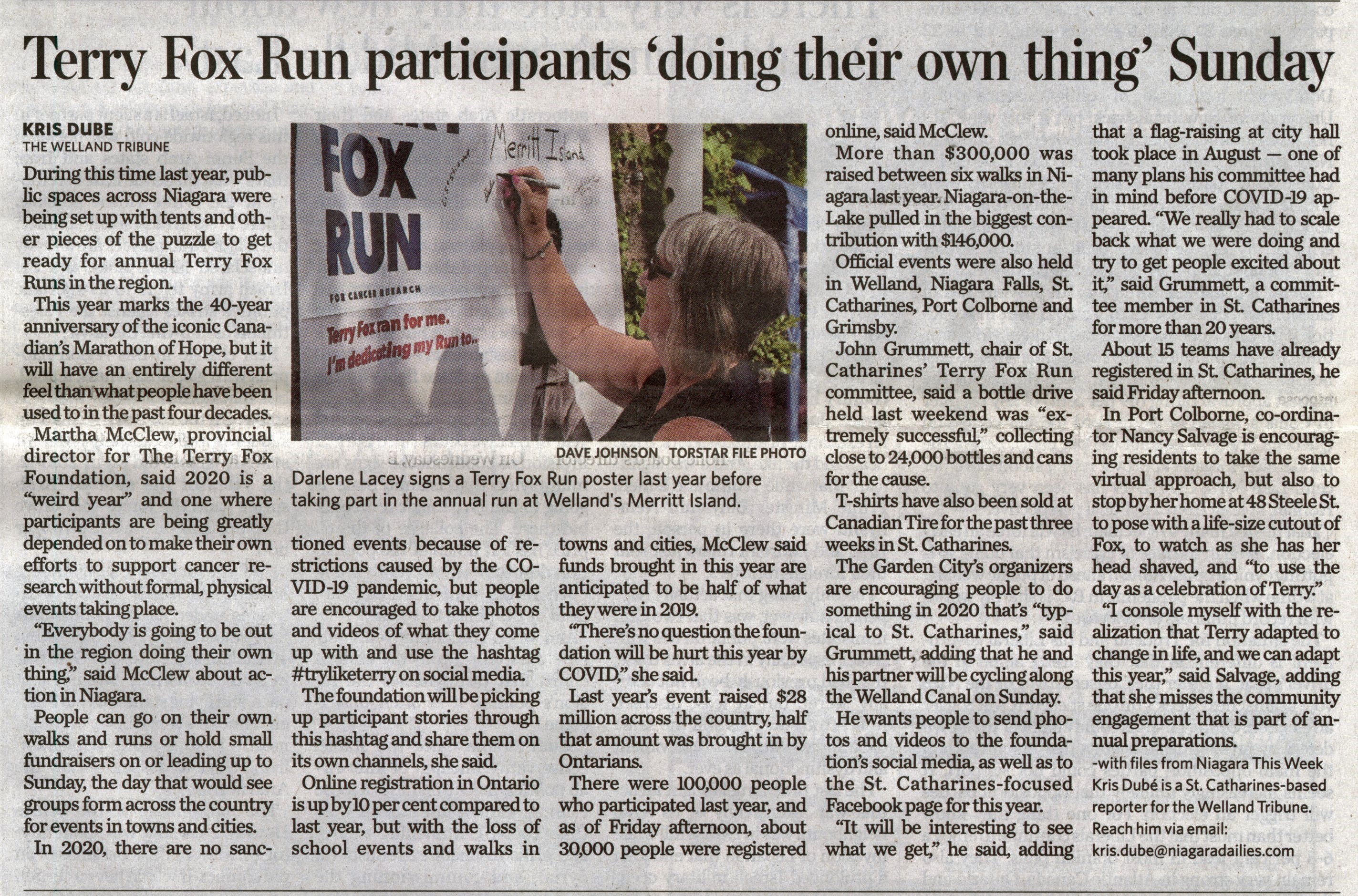 COVID-19 pandemic / McClew, Martha / Terry Fox Foundation / online registration /