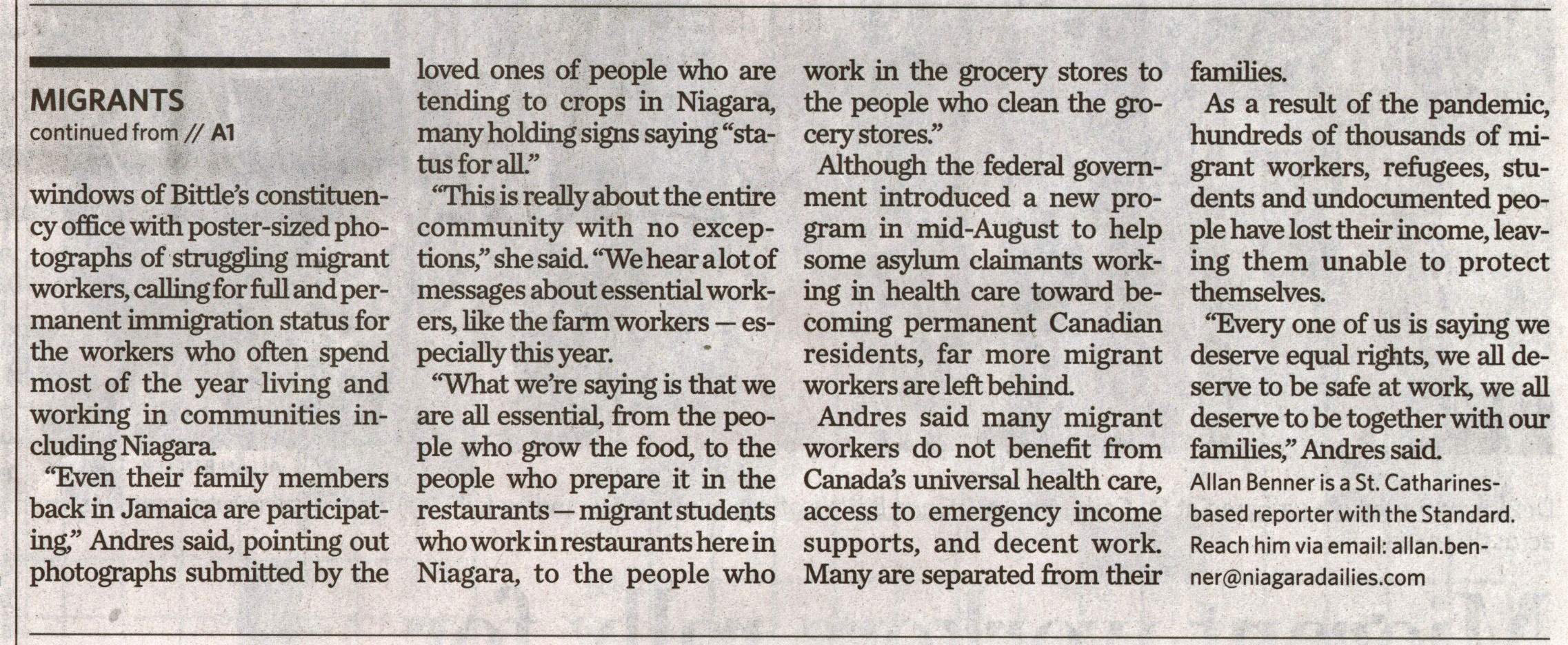 Montazeri, Shiva / COVID-19 pandemic / Migrant Workers Alliance For Change - Niagara - Subject