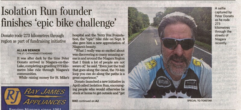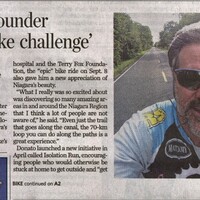 - Donato, Peter / Terry Fox Foundation / St. Mike's hospital / bike ride / Niagara Region / Isolation Run / COVID-19 pandemic