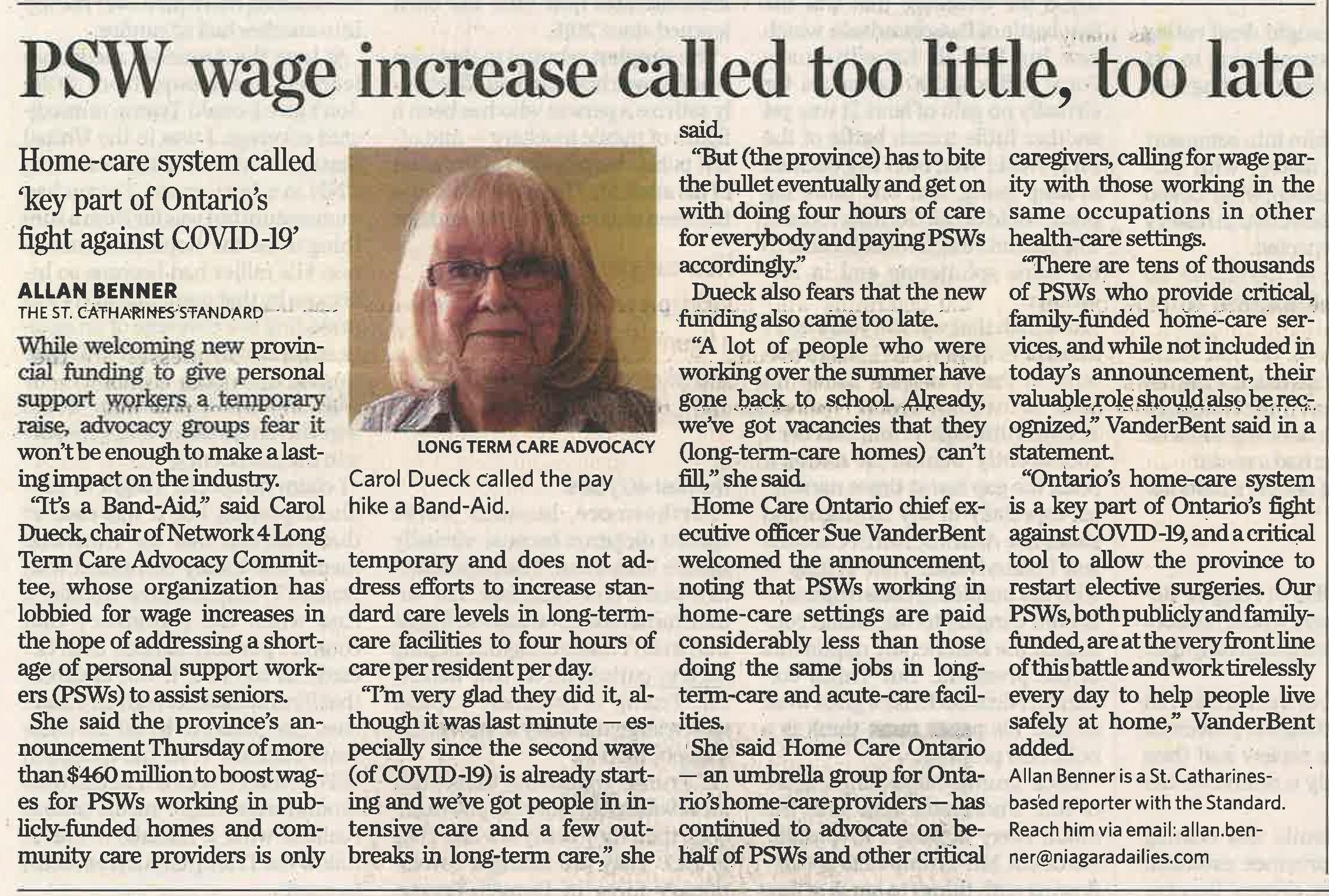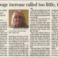 - PSW wage increase called too little, too late : home-care system called key part of Ontario's fight against COVID-19