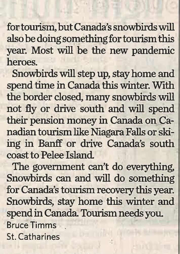 - Snowbirds can flock to Canadian tourism destinations this winter