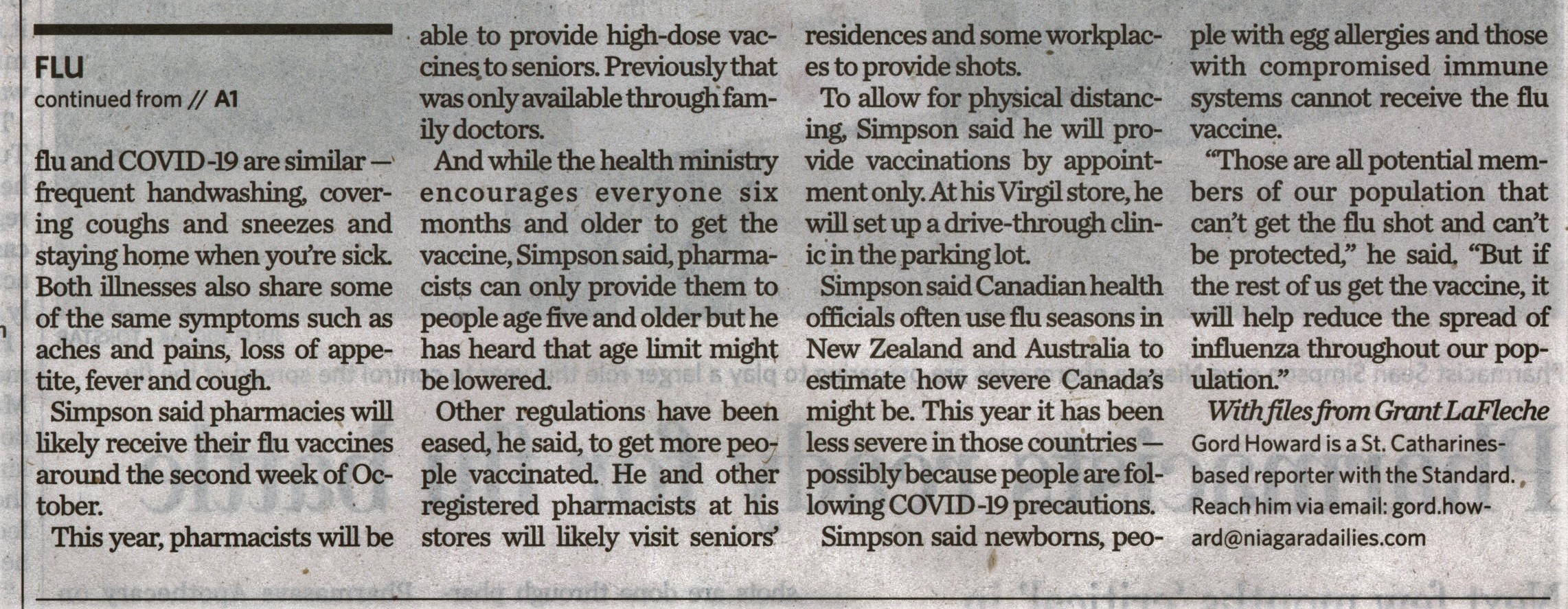 - Pharmacists ready for flu battle : Next few months 'critical' in stopping COVID resurgence: Ford