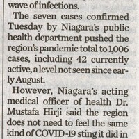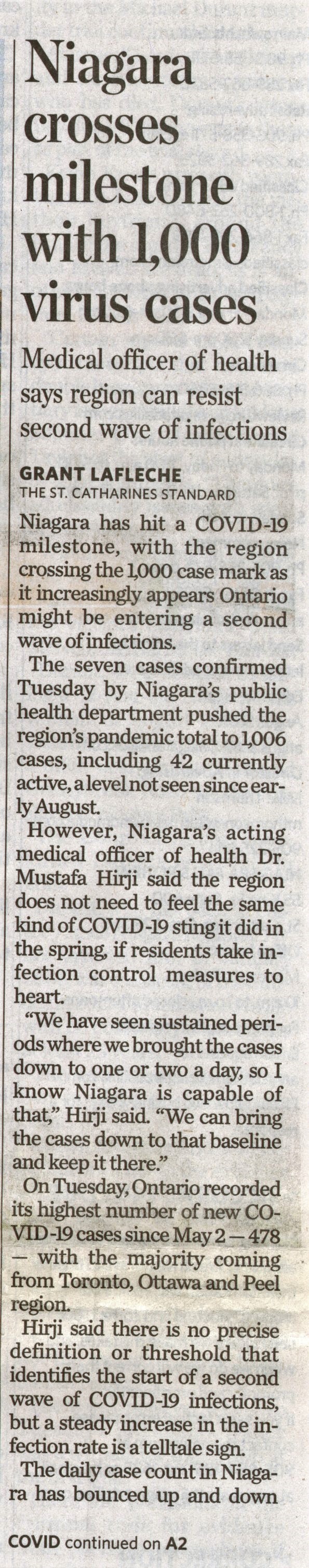 - Niagara crosses milestone with 1,000 virus cases : Medical officer of health says region can resist second wave of infections