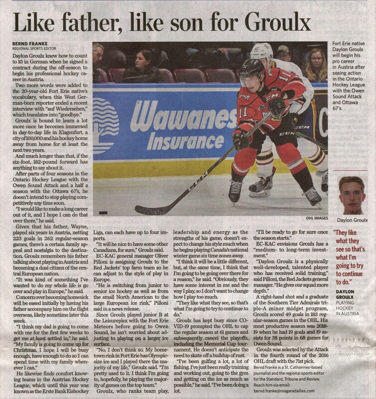 - Groulx, Daylon / Ontario Junior Hockey League / Groulx, Wayne / COVID-19 pandemic