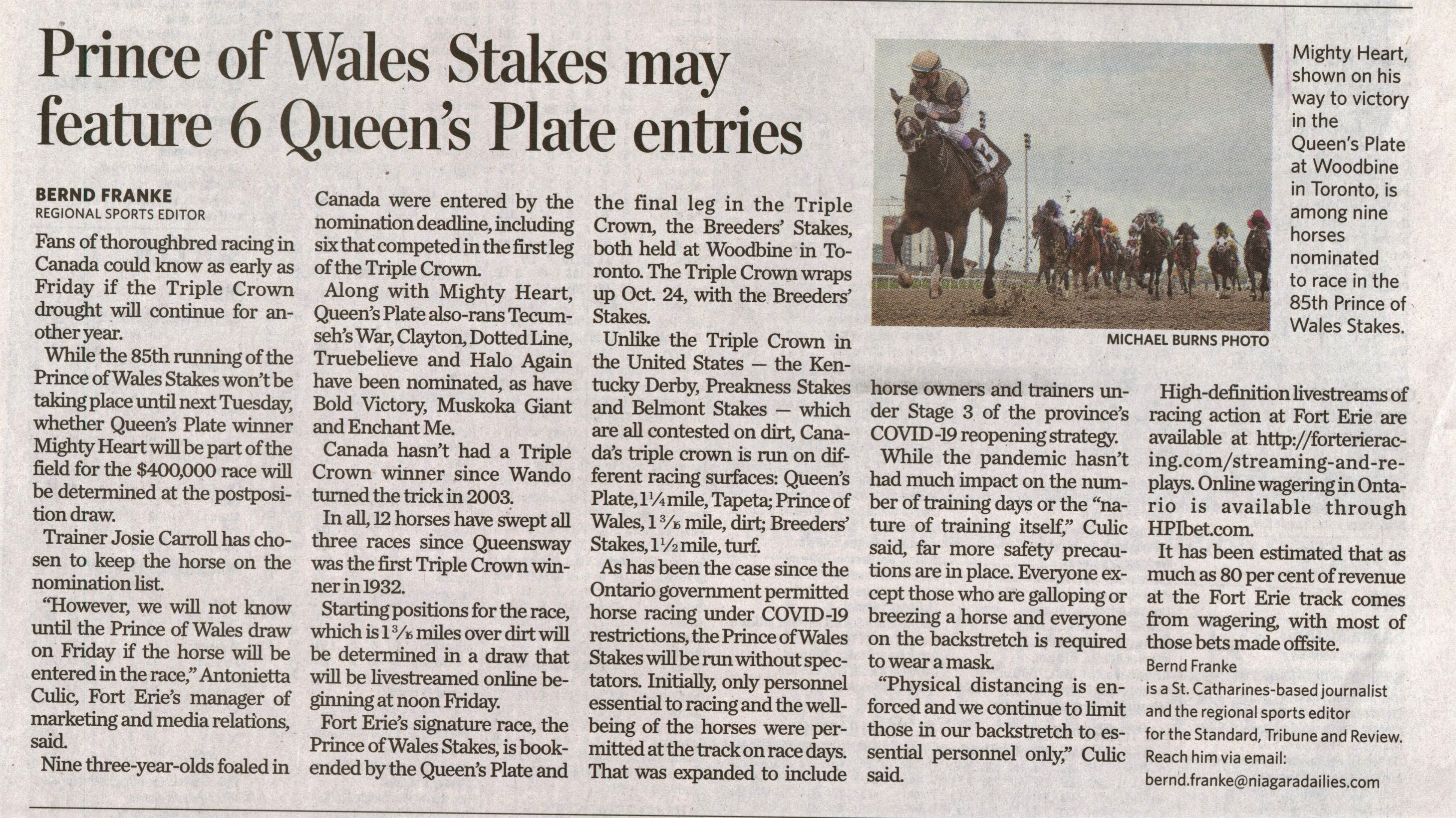 - Prince of Wales Stakes may feature 6 Queen's Plate entries