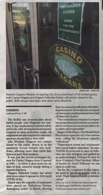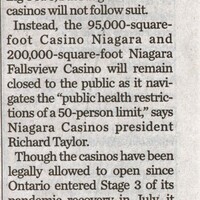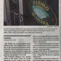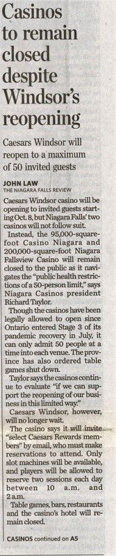 - Casinos to remain closed despite Windsor's reopening : Caesars Windsor will reopen to a maximum of 50 invited guests