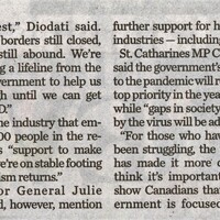 - COVID-19 pandemic / Allison, Dean MP / tourism industry struggling / Baldinelli, Tony / Diodatti, Jim (Mayor) / economic recovery